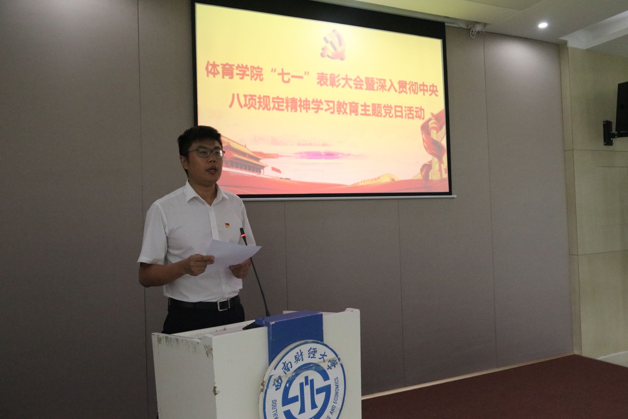 副经理(主持工作)陈丛刊主持大会时指出,全体党员同志要以此为契机,进一步发挥战斗堡垒和先锋模范作用,赓续西财优良传统,潜心立德树人,弘扬体育精神,新百年新征程奋力回答好“强国建设、西财何为”“西财建设、体育何为”的时代命题。