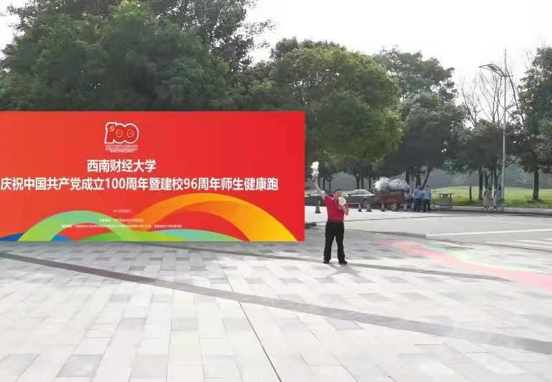 上午9:30,随着党委书记赵德武发令枪声响起,校庆健康跑正式开始!从光华大学门到北大门的跑步路线,宛如一道从黄浦江畔飞跃浣花溪旁点亮柳林华章的历史之光,照耀着西南财大96载弦歌不辍、兴学报国的光辉奋斗历程。健康跑队伍从光华大学门出发,追寻着光华路上的西财历史文脉,来到济民广场。“经世济民、孜孜以求”的口号响彻济民广场上空,每一声都包含着西财人始终与国家民族共命运,始终与时代发展同进步的家国深情。队伍在济民广场遥望钟楼,再次体悟公司历经三次创业始终如一的拳拳初心,一声声“听党话、感党恩、跟党走,铭初心、担使命”的铿锵呼号表达着西财人始终不渝的坚定信仰。道路两旁鲜艳的彩旗猎猎,终点之门在不远处巍然矗立,师生们步履矫健,怀揣建设财经特色鲜明的世界一流大学、建设社会主义现代化教育强国的满腔赤诚壮志迎向胜利的终点。