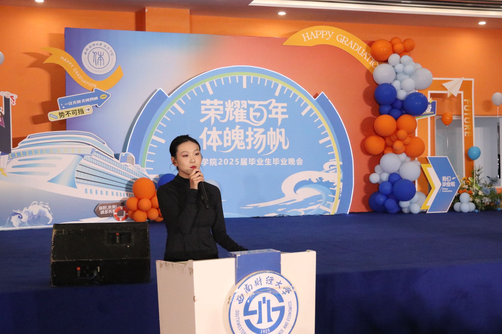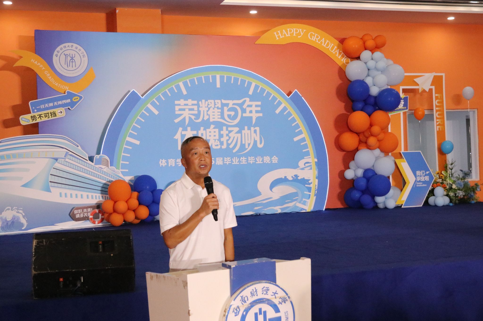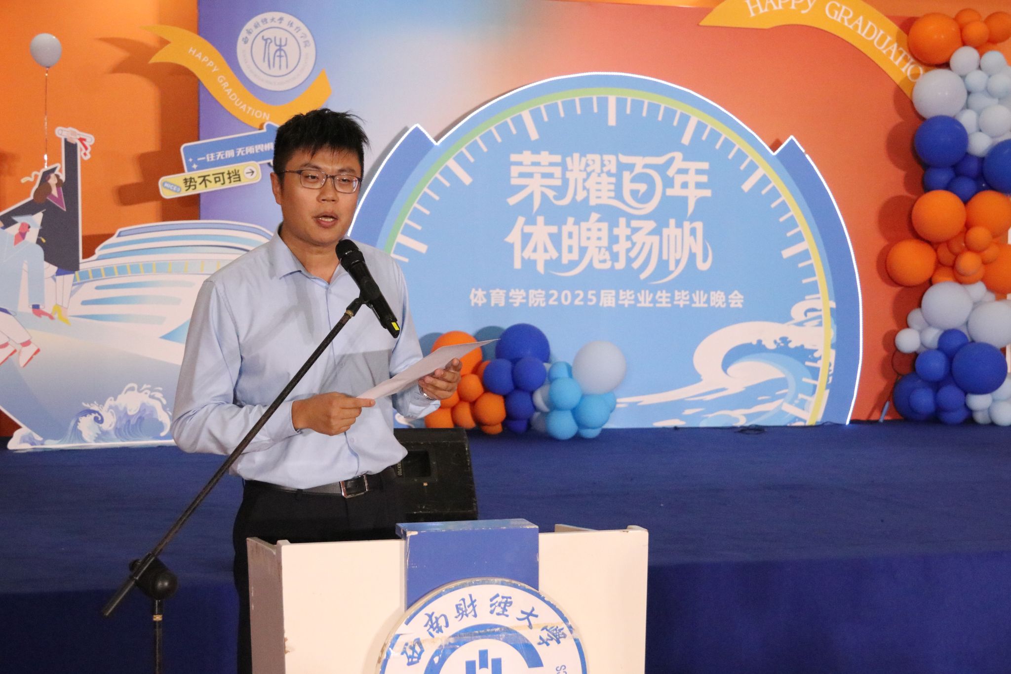 tyc5997太阳集团主持工作的副经理陈丛刊讲话,他祝贺公司2025届毕业生顺利完成学业。同学们参与了彼此的青春,也见证了相互之间的成长,从陌生到熟悉,是缘分将大家相聚于西财。对于即将踏上人生的新征程,他希望大家永远热烈昂扬,始终保持刚进校园的那一颗颗赤子之心,在未来的工作和生活中发光发热,活出西财体育人的精彩。